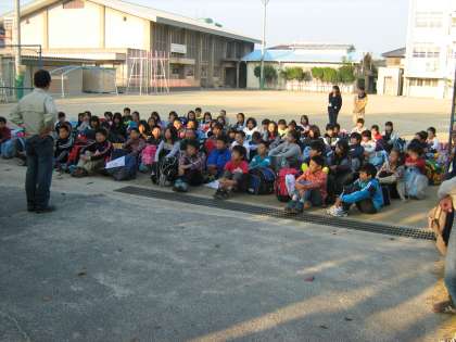 出発式では大きな声で代表の児童が挨拶をして,元気に曽爾高原へ行きました。
