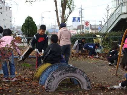 日ごろから遊んだり,通ったりする公園や道を女性会の方と地域清掃をしました。自分たちが住む伏見住吉をきれいにしようと,汗をかきながら一生懸命清掃していました。「こんなにごみが落ちてるなんて!」「どんな気持ちで捨てているんだろう」「ポイ捨てなんか違反にしたらいいんや!」「きれいにしたら気持ち良いな!!」など,子どもたちから聞くことができました。