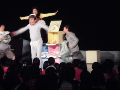 自分たちと同じ小学生が主人公ということで,子どもたちは,自分に重ね合わせて観ていたようです。さちが天使に励まされて苦手な跳び箱に挑戦する場面では,思わず「がんばれ!」の声がかかったり,無事に跳べた時に拍手が起こったり,・・・会場が一つになって作品の世界を楽しんでいました。