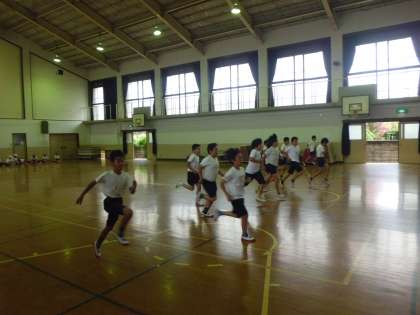 「ドレミファソラシド」の音の間に20mを走るということをくり返します。
