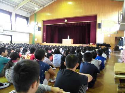 10月14日(火)心配した台風の影響もなく,後期が始まりました。3連休を挟んで元気に登校できました。空には虹がかかり,すてきな後期になりそうな朝でした。PTAの方々も声かけ運動をしていただき,気持ちのいいスタートがきれました。ありがとうございました。始業式では自分の命は自分が守り大切にすることや持った目標を続けるとそれが当たり前になり,当たり前になったとき自分の力になるという「継続は力なり」の話をしました。後期に向けてがんばりましょう。