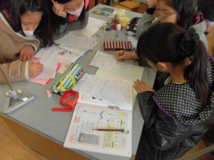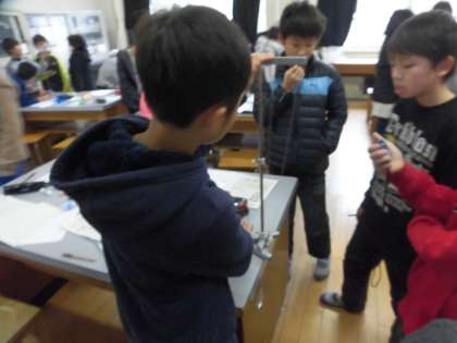 この実験では,何回か同じことをして,その平均をとるというやりかたをしました。みんな,一生懸命に実験に取り組んでいました。
