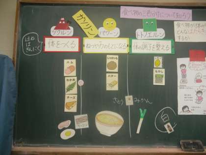 栄養教諭の先生に食べ物の三色分けについて,教えてもらいました。