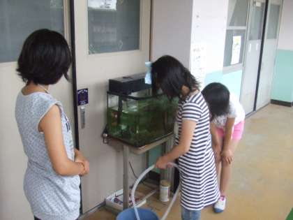 水を入れ替え,餌をやり,