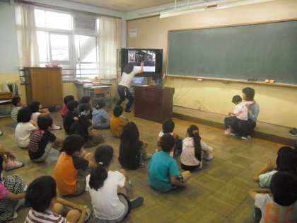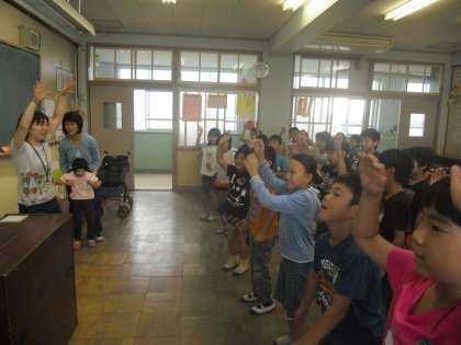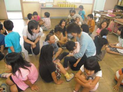 普段の学校での様子を紹介してもらった後,みんなでリトミックをしたり,ゲームをしたりしました。お互い,初めは緊張していましたが,時間が経つにつれ,笑顔も出てきて,楽しい時間を過ごしました。