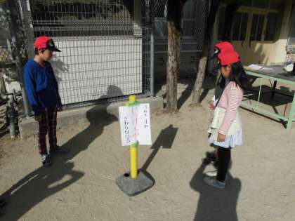 今日は,ポールをグラウンドに置いて影の動きを観察しました。