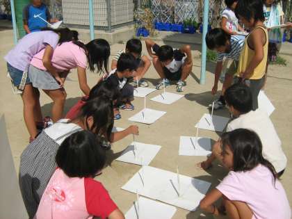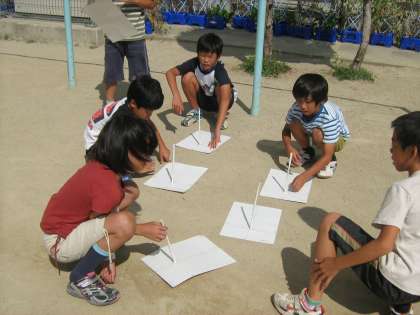 理科で,太陽の動きとかげの動きの学習をしています。