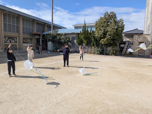 当日は、多くの子どもたちが参加し、地域の方に凧の作り方を教えていただきました。完成した凧を手に、校庭では笑顔いっぱいで凧揚げを楽しむ姿が見られました。