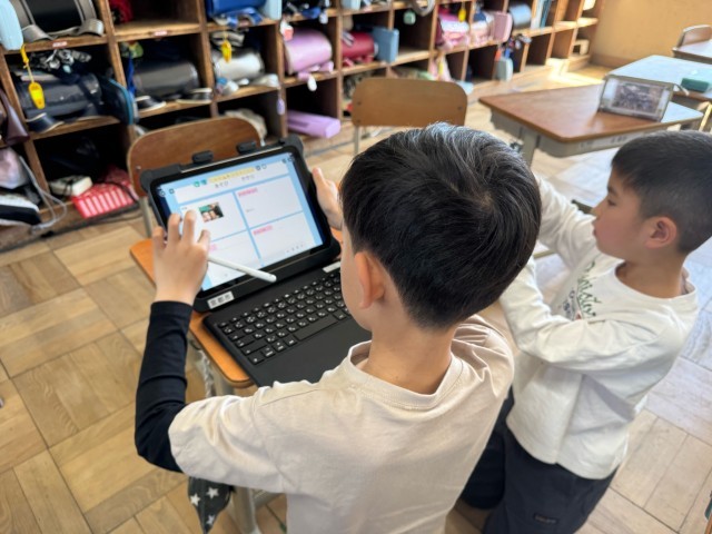 係活動を始めています。それぞれの係に分かれて、係の紹介カードをロイロノートで書きました。音楽係はこの日、ダンスの練習をして、次の日、みんなの前で披露してくれました。楽しい係活動になりそうです。