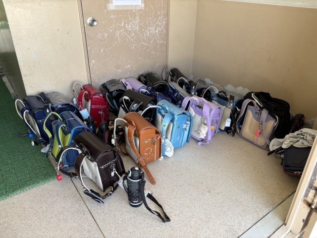 ふと昇降口を見ると、子どもたちの荷物がきれいに並べられていました。