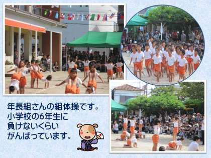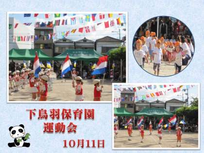 本校のお隣には下鳥羽保育園があります。本校児童の半分近くは下鳥羽保育園の卒園であり,本校とはかかわりの深い保育園です。運動会は当初9日(土)の予定でしたが,天侯の関係で11日(祝)に行われました。
