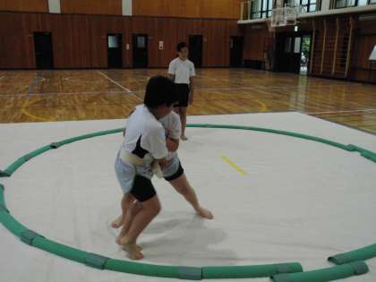 毎週水曜日,体育館で相撲マットを敷き,