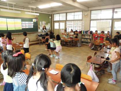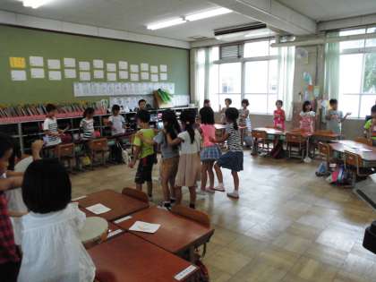音楽では,今まで使った楽器でみんなで「しろくまのジェンカ」を合奏しました。いろいろな楽器が組み合わさり,音が響き渡りました。みんなで合わせる楽しさを味わいました。