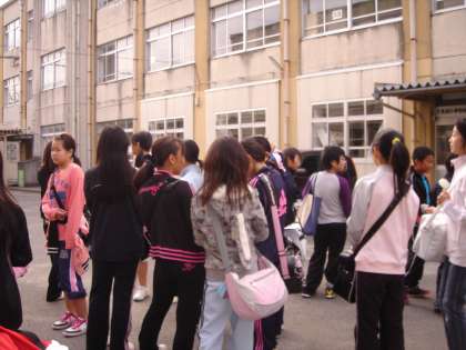 先日の土曜日(10.23),バレーボール部の全市交流会がありました。会場は竹田小学校でした。朝,学校に集まり,堀川通りまで歩き,そこから市バスに乗って会場に向かいました。
