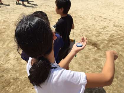 6年生が運動場に出て「月」「太陽」の位置関係について