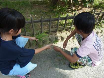 朝方とっても涼しい気候になってきました。そんな中,汗だくで何かを集めている子ども達を発見!!!近づくと,手には「ねこじゃらし」がいっぱい!なぜ集めているのかと尋ねると,バッタを教室で育てているそうです。生き物を大切にする心が育っていて,とてもうれしい気持ちになりました。