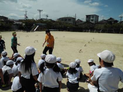 まずは,ミニハードルを使いながら足の運び方に意識して取り組んでいました。