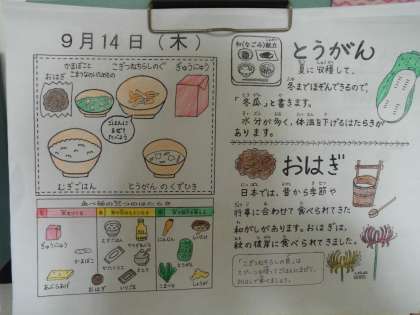 子ども達も,とても楽しみにしている「和献立」!!メニューの中にトウガンを使った料理があります。トウガンは、夏が旬の野菜!!でも漢字だと「冬瓜」と書きます。なぜこのような漢字が使われているのでしょうか。