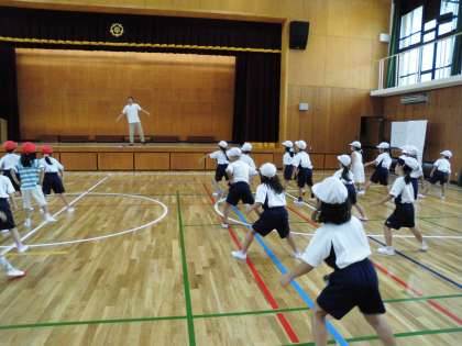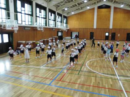 運動会の練習がはじまりました。今日は踊りを練習しました。はじめて覚える振り付けもどんどん覚えて楽しそうに踊っていました。