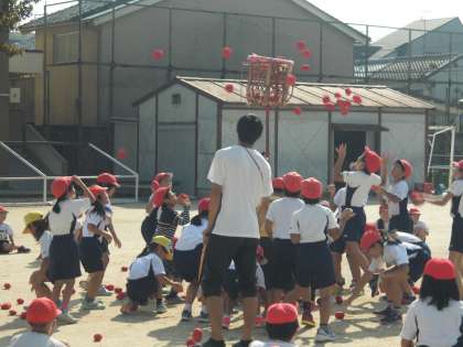 低学年・中学年・高学年ごとに籠の高さを変え,三回戦行います!!