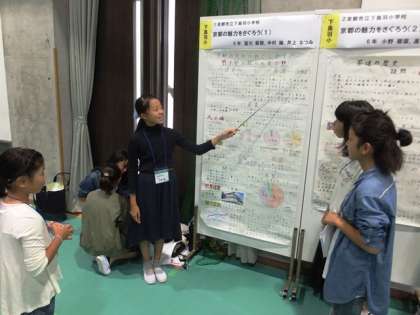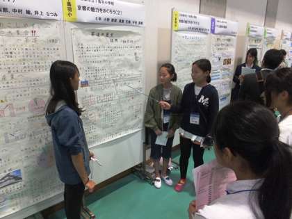 当日,下鳥羽校は6年代表の3グループが堀川高校にて他校とポスター発表をし合い,交流しました。