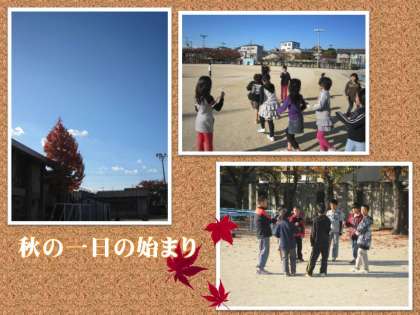 学校の校庭の木々が美しく色づいてきました。もう秋も本番です。少し肌寒く感じるようになった朝の空気の中で,子どもたちは元気に遊んでいます。これから寒くなっても,外で身体を動かして遊ぶ機会をどんどん増やしてほしいものです。