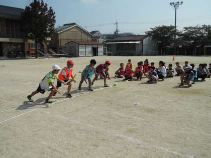 高学年選手リレーの練習がありました。正確なバトンパス・走る距離のロスを最小限に抑える方法!など,先生がお手本を見せる場面もありました。少しでも速く走れるようにと,子ども達は一生懸命練習をしていました。本番が待ち遠しいですね。