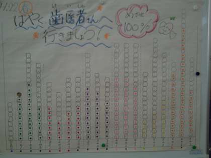 学校では各クラスごと治した人にはシールを貼り,様子がわかるようにした表をずっと掲示しています。