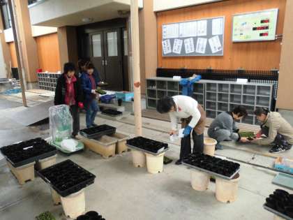 園芸ボランティアさんのサポートのもと,2年生はふれあいカーニバルに向けて苗の移植に取り組みました。事前にボランティアさんが時間をかけて丁寧に準備をしてくださいました。ありがとうございます。11月19日の販売までよろしくお願いいたします。