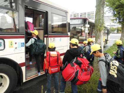 子どもたちは,大きなリュックを持ち,バスに乗りこみました!!