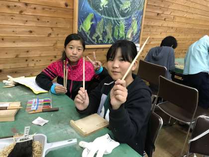 完成した竹ばしで,食事もします!!