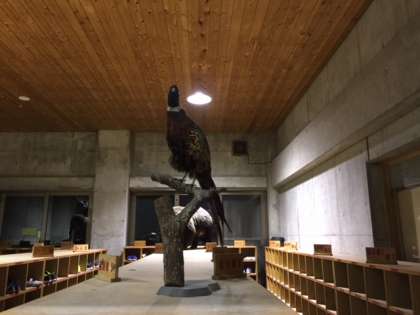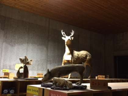 花背山の家の本館を入ると,シカやクマなどの剥製があります。