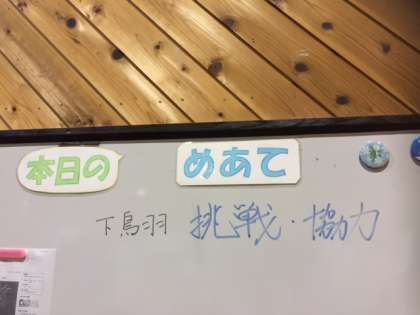 本日のめあては,「挑戦」「協力」です。