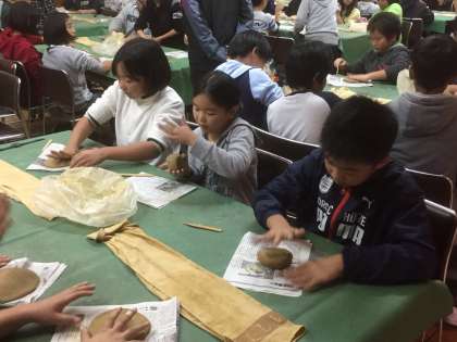 なんと!!師匠から,「下鳥羽小学校の子どもたちは今年1番上手!!」と最高のお褒めの言葉をいただきました。焼き上がりが楽しみですね!