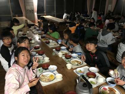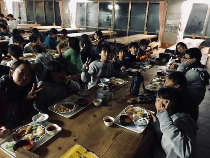 少しの間停電のトラブルもありましたが,「なんか暗くて野外炊事みたいやなぁ」とへっちゃら!楽しくご飯を食べていました。