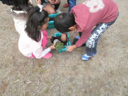 早く作業が終わった子は,これから植える友だちに,教えるという姿が見られました。