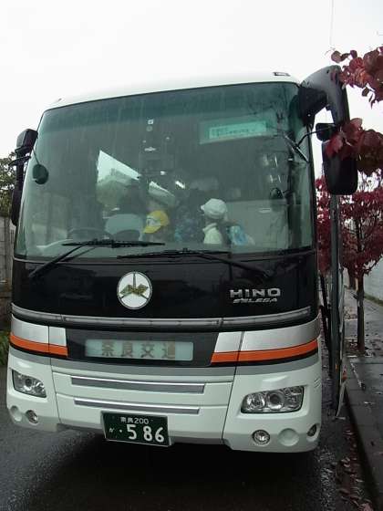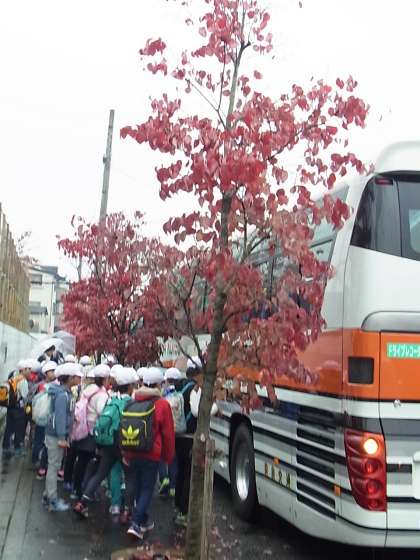 パラパラと雨の降る中ではありましたが,バスに乗って元気に出発しました。