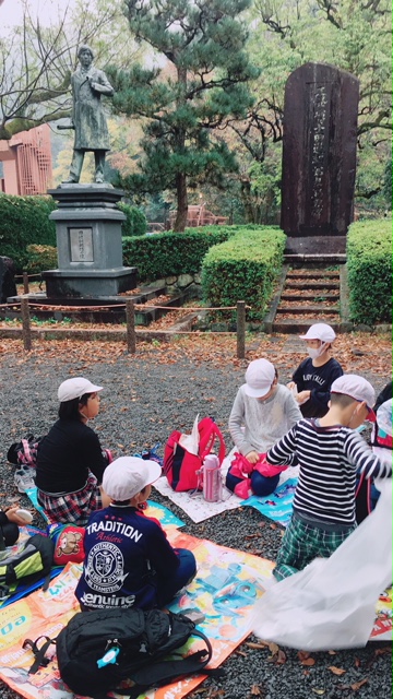 琵琶湖疏水建設に大きく携わった「田辺朔郎」の銅像前で昼食!!