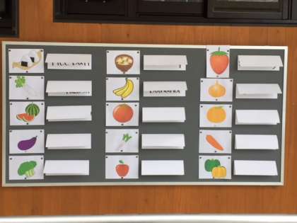学校では,季節を感じることのできる短歌や英語に親しめる掲示物を作り,児童が「見て・触れて・感じて」楽しく学習できるように工夫しています。