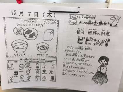 12月の給食目標は「いろいろな国の食べ物を知ろう」です。