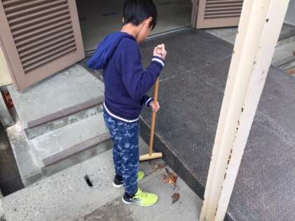 竹ぼうきを使って,落ち葉を集めていただきました!!
