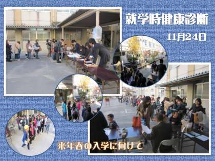 昨日,11月24日に就学時健康診断が行われました。来年度4月に入学が予定されている子どもたちが,健康診断を受ける日です。園児さんたちばかりですから,まだ幼さがいっぱいの子どもたちでした。初めて小学校の教室に入るのですから,少し緊張気味だったかもしれません。