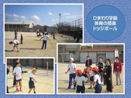 今日も良いお天気です。ひまわり学級の体育の時間を参観しました。今日の体育は,ひまわり学級のみんなでドッジボールをしていました。みんなとてもうまくゲームが進められていました。ゲームのルールを守り活動できていました。何より笑顔いっぱいで,ボールを投げたり,逃げたりしているのがよかったです。最後に先生から「あてられてもすねたりしないでゲームを楽しみましょう。」と話がありました。