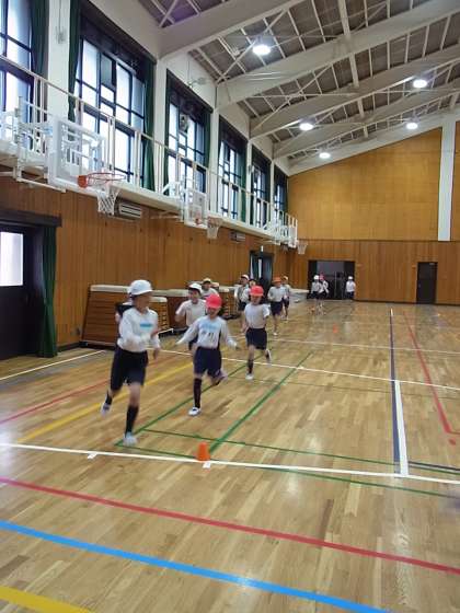体育の学習は「持久走だよ!!」と子ども達に伝えると「えーーっ・・。嫌や・・・。」というお返事がたくさん返ってきました。「しんどい」というイメージがついているんですね。ですが,走る時間と自分のペースをしっかり掴んだ子ども達は,安定した走りを見せてくれています。