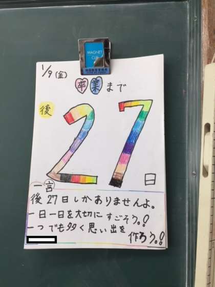 6年生の教室に入ると目に飛び込んできたのは,卒業までのカウントダウン,「日めくりカレンダー」!!