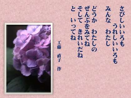 最初に,伏見南浜小学校の杉田校長先生から『身近な人権』と題してお話をして頂きました。話の中で,工藤 直子さんの短い詩を紹介して頂きました。心にひびく,よい詩だと思います。ぜひ読んでみてください。