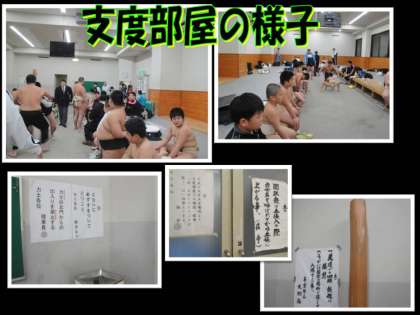 午前10時30分に会場入りし,開始式に続き,相撲教習所内にてウォーミングアップをしました。その後,支度部屋入りして取り組みに備えました。