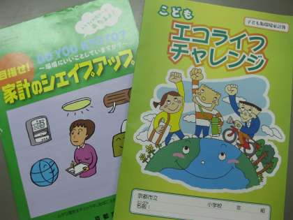 京都市では, 平成17年度から, 地球温暖化対策を家庭からも着実に進めるための取組として,子ども版環境家計簿を家族で活用いただく「こどもエコライフチャレンジ推進事業」を実施しています。将来を担う子ども達が,地球環境に対する理解を深めるとともに,冬休みの期間中に,御家族や友達と相談しながら,子ども向けの環境家計簿である「こどもエコライフチャレンジ」に取り組みます。それにより,子どもの視点からライフスタイルを見直し,省エネルギーをはじめとする「環境に配慮した生活」(エコライフ)を実践しています。