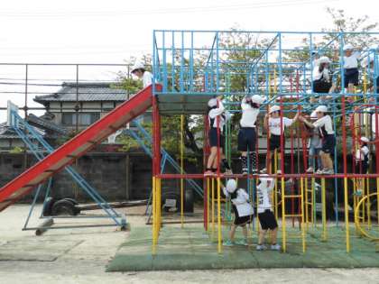 二年生になって、総合遊具の滑り台で滑ることができるようになりました。ルールを守って安全に遊んでほしいです。クラス対抗ドッジボールも行いました!