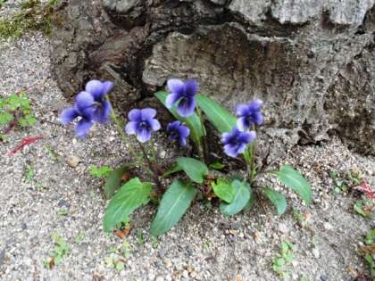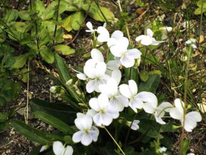 今回はみんながよく知っている「スミレ」です。パンジーの仲間のように花壇に植える種類もありますが,野草として野山で見ることができる花です。日本にはたくさんの「スミレ」の仲間があるそうです。(約50種類)下鳥羽校では,2色見つけることができました。